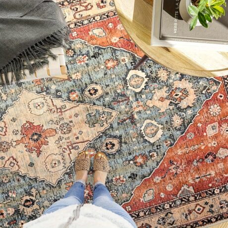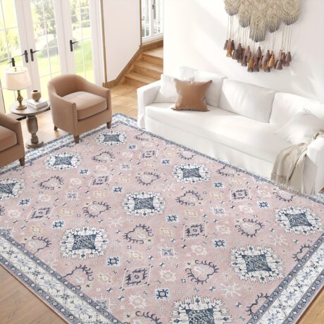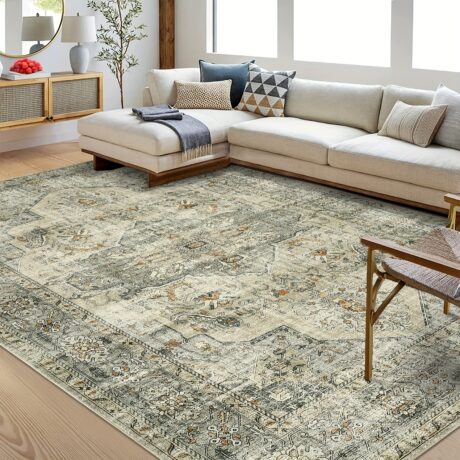 Luxurious Tribal Washable Rug – Large Boho Area Rug for Living Room, Non-Slip, Vintage Soft, Distressed Design, Indoor Floor Carpet for Bedroom, Bathroom, Kitchen – Easy to Clean, Durable, and Pet-Friendly