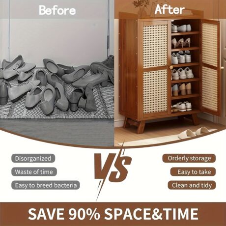 7 Tier Bamboo Shoe Storage Cabinet – Display Cases for Entryway, Closet, Hallway with Large Capacity, Free Standing, Doors, and Organizer Features