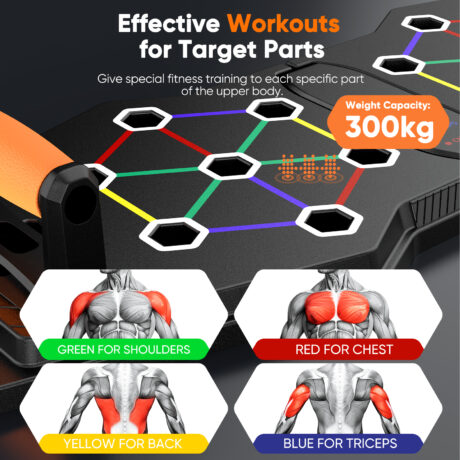 Foldable Push Up Board, 25-In-1 Multifunction Home Workout Equipment for Upper Body Strength Training, Portable Push Up Board with Color-Coded Variations and Accessories for Chest, Triceps, Back, Arms
