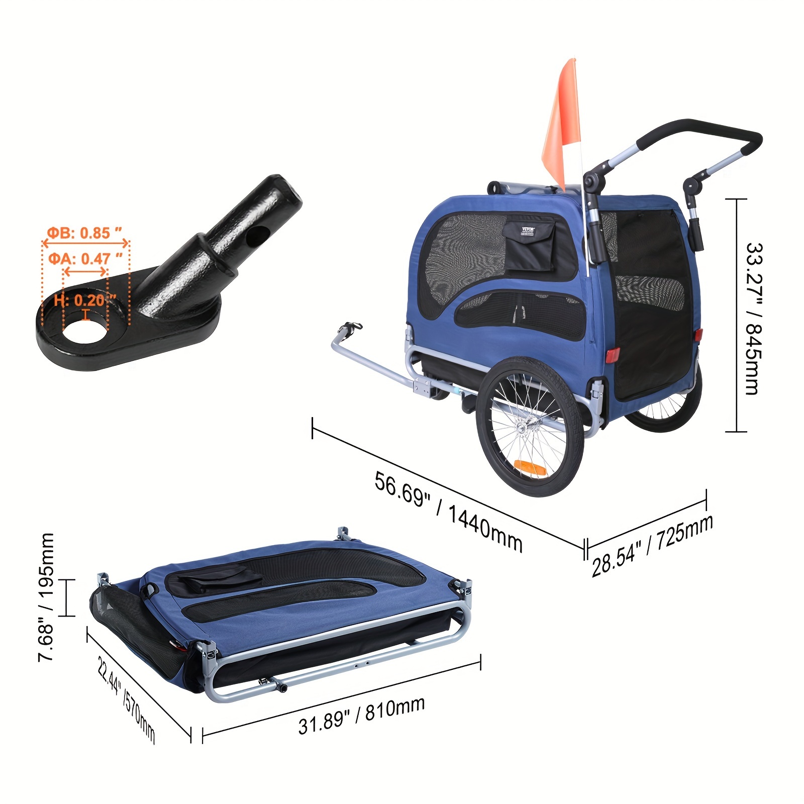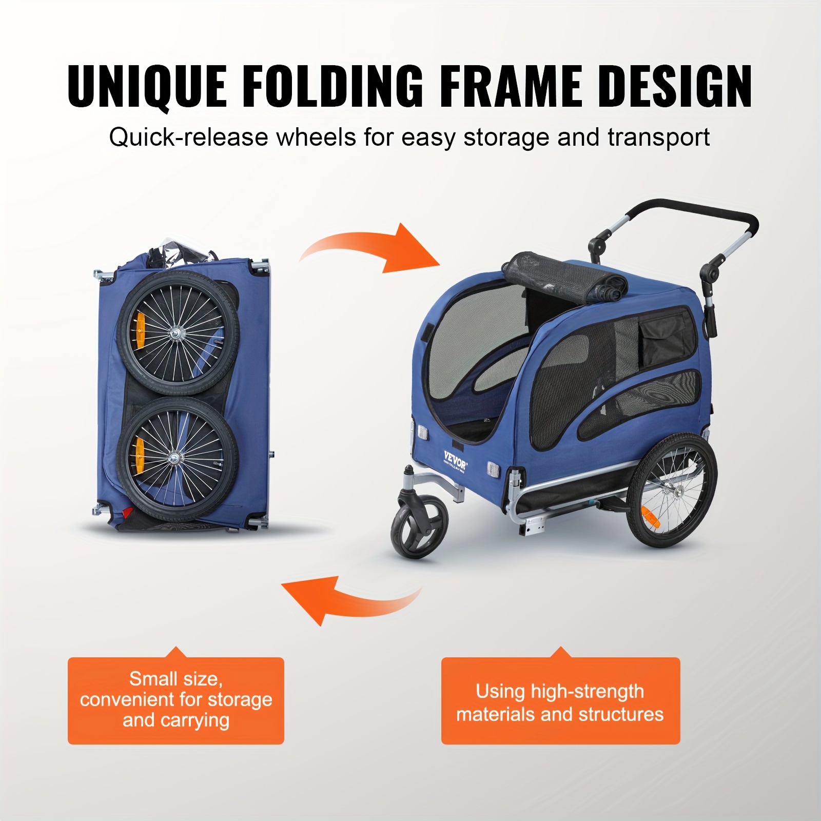 100 Lbs Capacity Pet Bike Trailer – 2-in-1 Stroller Cart with Easy Folding Frame, Quick Release Wheels, Universal Bicycle Coupler, Reflectors, and Flag – Durable, Safe, and Fun Pet Carrier for Outdoor Adventures