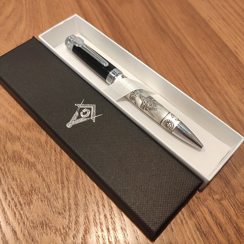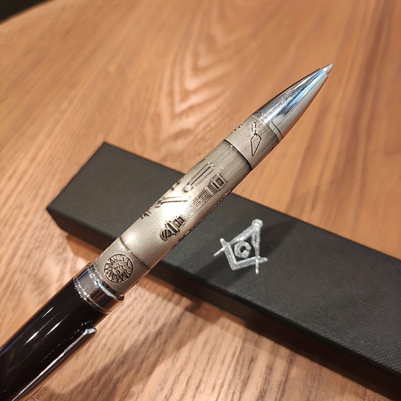 1pc 189 Masonic Symbols Noblest Ancient Silver Heavy Weight Silvery Clip Masonic Writing Ballpoint Pen With Gift Box