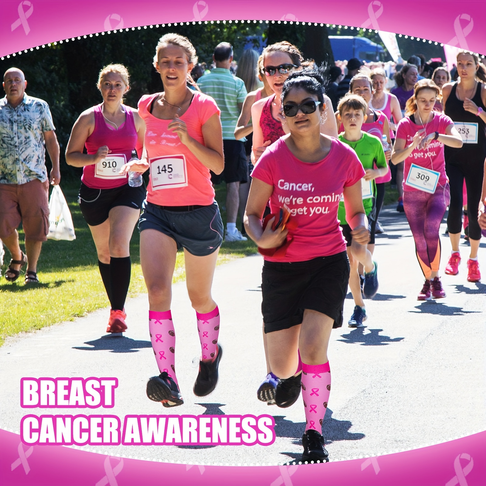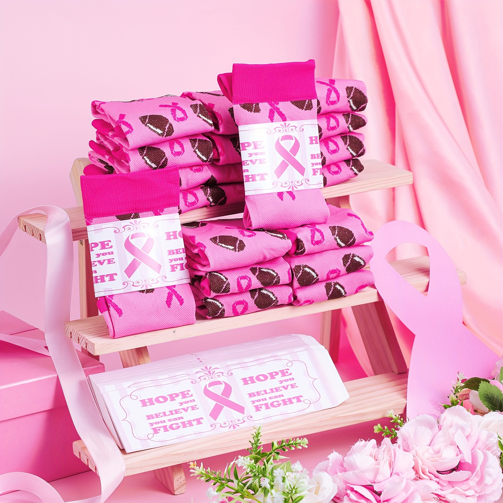 48 Pairs of Inspirational Breast Cancer Awareness Calf Socks – Soft, Pink Ribbon, Knee High Compression Socks with Uplifting Sock Cards – Over The Calf, Bulk, Comfortable, Supportive, and Meaningful Socks for Women