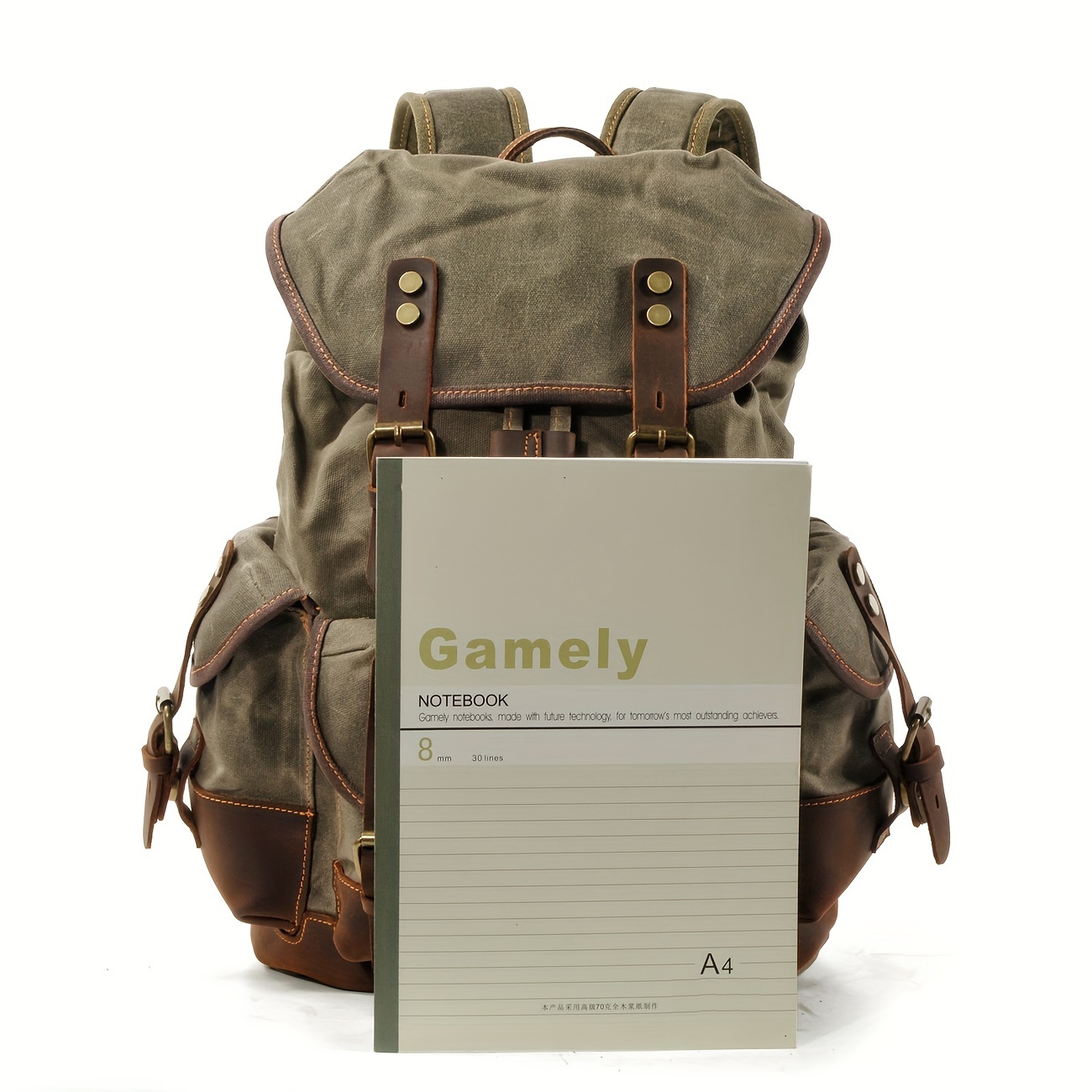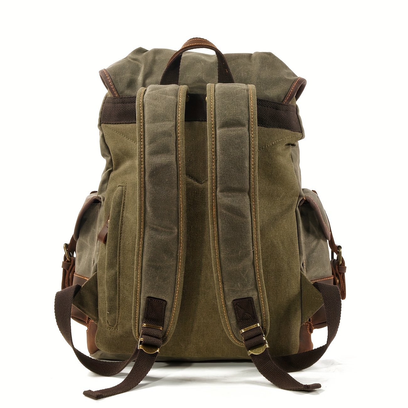 Large Capacity Vintage Canvas Backpack – Durable Stitched Leather Trim, Casual Student School Bag, Mountaineering Travel Companion with Multiple Compartments and Padded Shoulder Straps for Comfortable Carrying