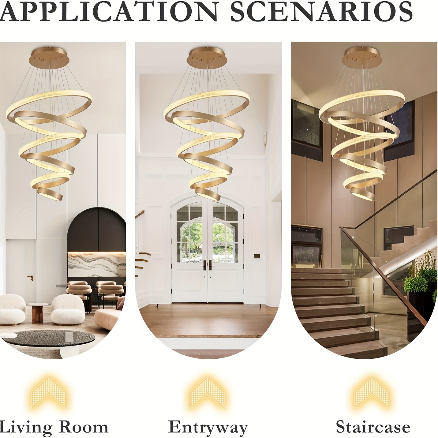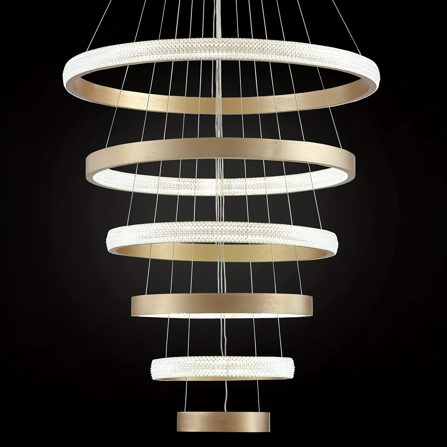 Modern LED Light, 6 Rings Gold Chandeliers Lighting Fixture For High Ceiling Staircase Dining Living Room Foyer (D27.55”)