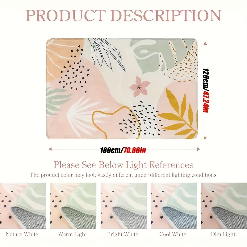 One Plant-printed Pink Rug, 71 By 47 Inch Living Room Bedroom Rug Washable Non-slip Bohemian Rug Lovely Soft Carpet, Abstract Interior Carpet Kitchen Entrance Laundry Dining Room