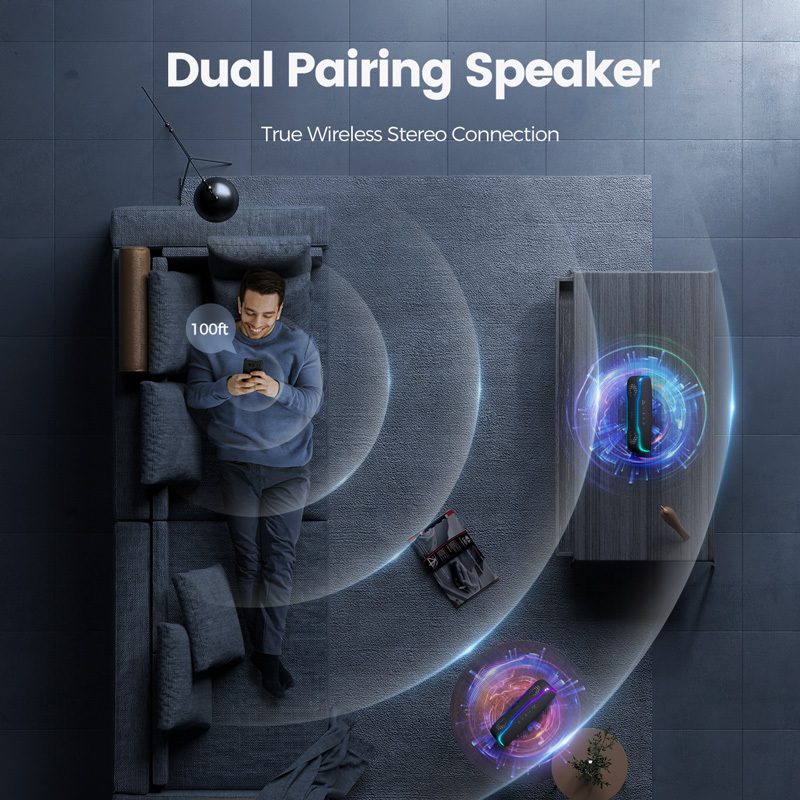 Portable BT Speaker, IPX7 Waterproof Wireless Speaker, 100ft BT Acceptance Wide Range, with Color Flash Light, 24 Hours Playing Time, Home Speaker, TWS Pairing, Outdoor|Party|Festival Portable Use, Suitable for Boys Gifts
