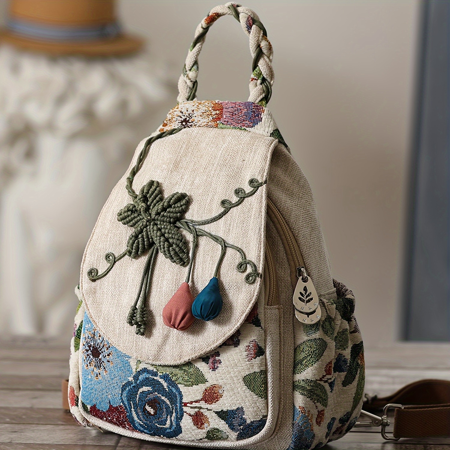 Womens Artistic Embroidered Backpack – Ultra-Lightweight Design for Effortless Carrying, Stylish Crossbody Strap for Hands-Free Convenience, Compact Daypack Perfect for Daily Essentials – Exclusively Designed for Women with Unique Artistic Embroidery